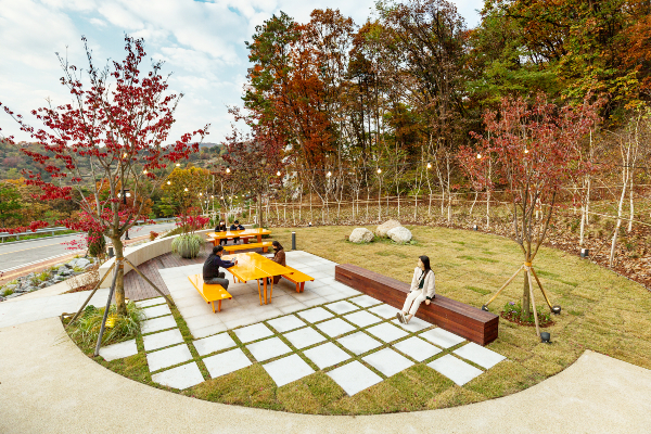 노을빛을 닮은 단풍들이 운치를 더하면서 겨울을 맞고 있지만, 또 땅속에는 새봄을 준비하는 많은 꽃이 자태를 뽐낼 시간을 기다리고 있다. 자작나무 하부에는 바람의 흐름에 따라 새잎을 흩날릴 준비를 하는 털수염풀이 식재돼 있다. 이 털수염풀 사이사이 땅속에는 초봄에 개화할 노란색 수선화 구근, 5월에 크고 동그란 연보라색의 꽃을 피울 알리움이 봄을 기다리고 있다.