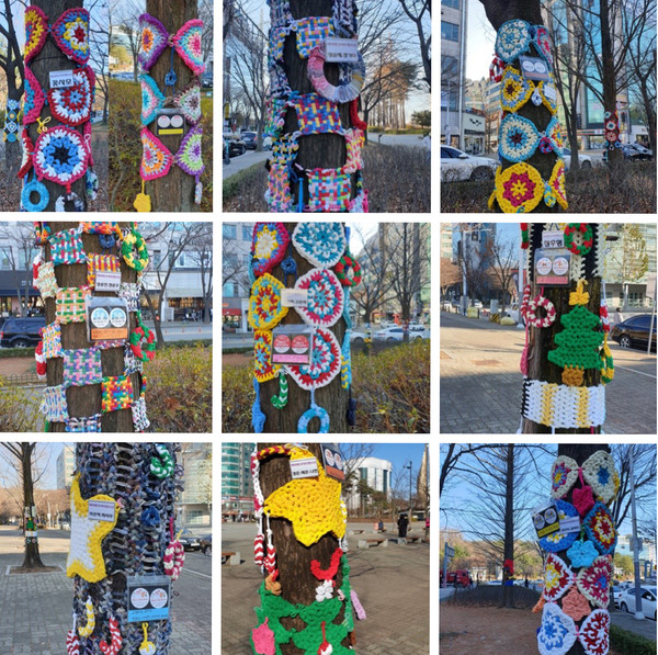 유영전 마을공동체 대표는 “올해도 작년에 이어 나무 10그루에 옷을 입혔다. 코로나19로 힘든 상황에서 마을 주민들이 함께 정성 가득한 뜨개옷을 만들어 나무에 입히면서 서로의 온정을 나눌 수 있어 기뻤다”라고 전했다.