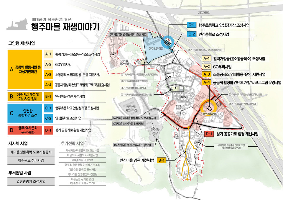 시 관계자는 “행주지역의 노후된 정주 여건과 통학환경을 개선하는 등 주민요구가 높은 생활밀착형 사업 위주의 고양형 도시재생사업을 추진해 행주지역의 재생기반을 마련하고, 향후 행주산성 등 지역의 다양한 자원과 연계해 역사문화관광 특화마을을 조성할 수 있는 기반을 마련하겠다”고 말했다.