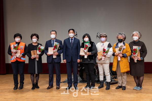 기념식에서는 봉사시간 5천 시간에서 2만 시간 이상 ▲도자봉이~동자봉이(12명) 표창과 ▲경기도지사 표창 ▲고양시장 표창 ▲고양시의회의장 표창 등 2021년 고양시 자원봉사 유공 표창자 167명을 대표하여 표창장이 수여되었다.