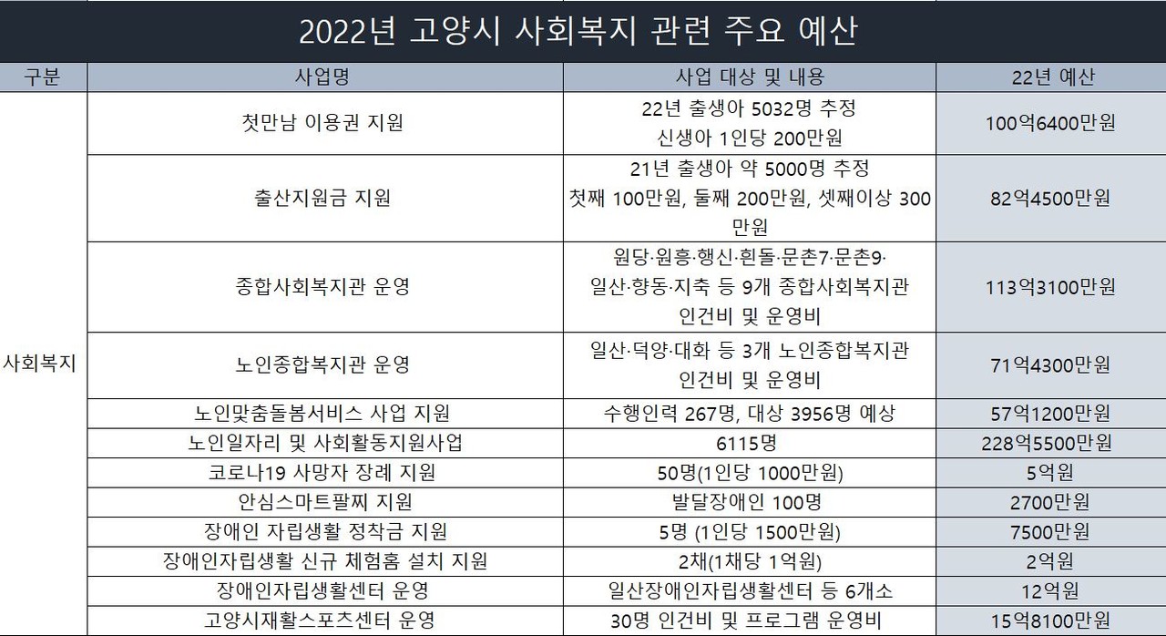 내년 3조원 넘는 고양시 예산 어디에 쓰일까 - ⑦사회복지