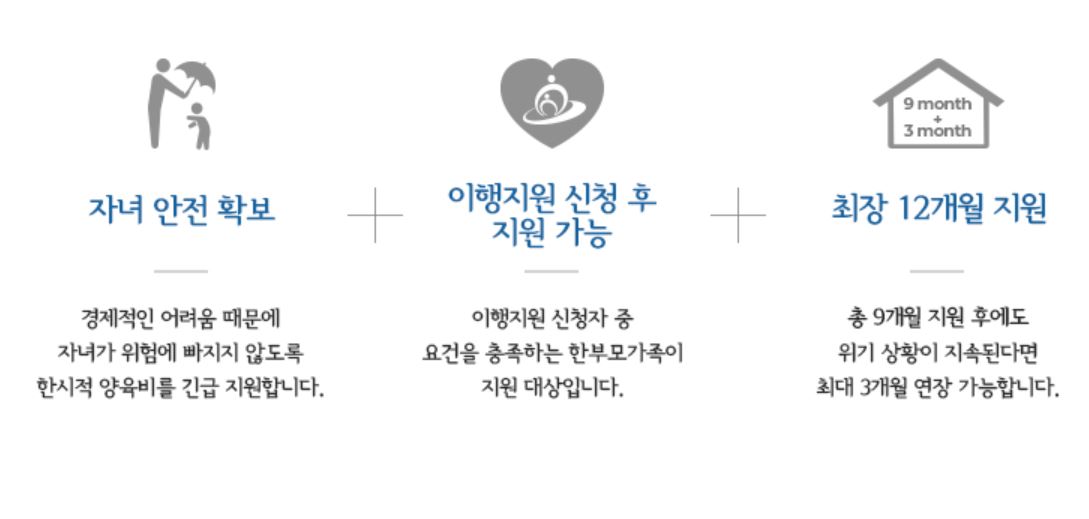 시 관계자는 “한시적 양육비 긴급지원 금액은 자녀 1인당 월 20만원이며 총 9개월 동안 지급한다. 단 ‘한부모가족지원법’에 따른 아동양육비를 지원받는 경우에는 9개월 동안 자녀 1인당 월 10만원을 지급받는다. 자녀 양육 위기 상황이 지속될 경우에는 1회에 한해 연장이 가능하다”고 설명했다.