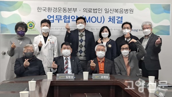 2021년 한 해를 마무리하는 30일, 오전 11시에 일산복음병원 6층 세미나실에서 사)한국환경운동본부(총재 임형성)와 의료법인 일산복음병원(이사장 손재상)이 의료복지 제휴를 위한 업무협약을 체결했다. 이번 협약은 양 기관의 상호 협력을 통한 발전과 지역사회에 공헌함을 목적으로 하는데 뜻을 두고 진행되었다.