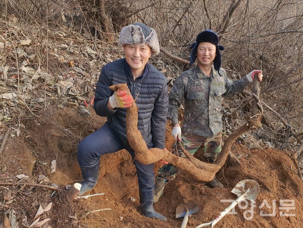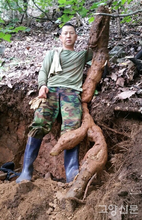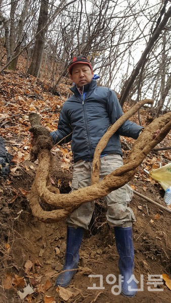 [고양신문] 김영기 대표(주교동, 백두분재조경-백두강원 산야초 37년째 운영)가 지난 8~9일 2일간 강원도 인제군에 있는 겨울산에서 60년생 칡(암칡)을 수확했다.