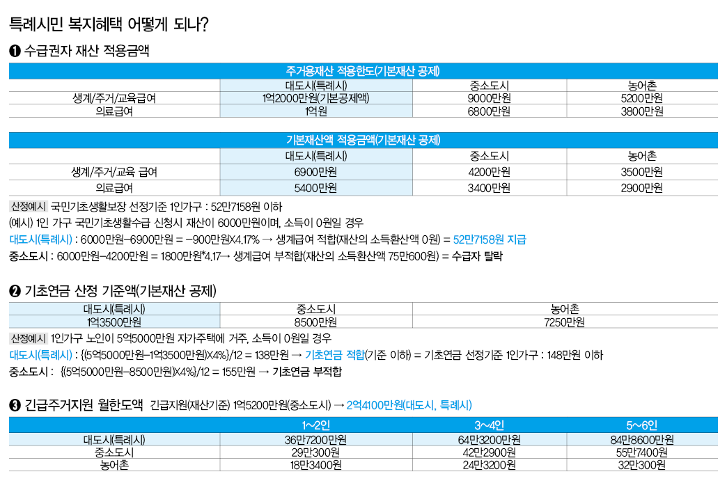 그러나 이는 특례시의 인구와 도시규모, 생활수준을 반영하지 못한다는 지적이 있었고, 보건복지부는 지방자치법 제198조에 따라 인구 100만 이상 대도시에 대하여 특례를 인정하는 ‘특례시’가 출범하는 시기에 맞춰 기초생활보장제도의 기본재산액 관련 고시 개정을 추진했다.