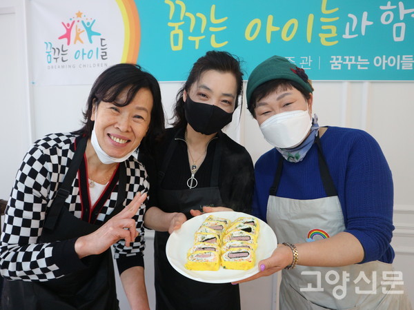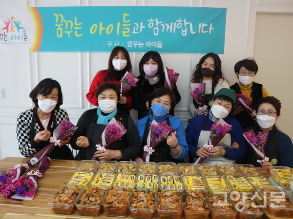 매달 넷째주 월요일이면 ‘꿈꾸는 아이들’(대표 유미) 회원들은 정발산동에 위치한 지음에스테틱 사무실에 모여 위탁가정과 보호종료 소년소녀가장들에게 전달할 반찬을 만든다. 지난달 24일에도 10여 명의 회원들이 모여 정성이 듬뿍 들어간 밑반찬 3~4가지를 만들고 작은 꽃다발을 준비해 각 가정에 배달했다.