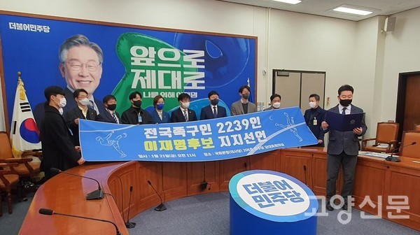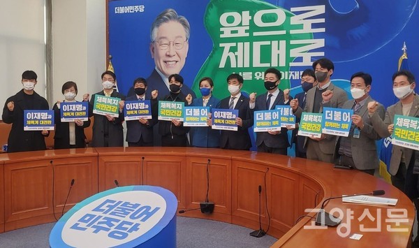 [고양신문] 대한민국족구협회가 국회의사당 본청 더불어민주당 당대표 회의실에서 김병욱 국회의원(선대위 직능본부장), 임오경 국회의원(선대위 직능본부 체육위원장), 박상현 직능본부 부본부장과 정책간담회를 갖고 족구인 2239명의 이재명 후보 지지선언 명부를 전달했다.
