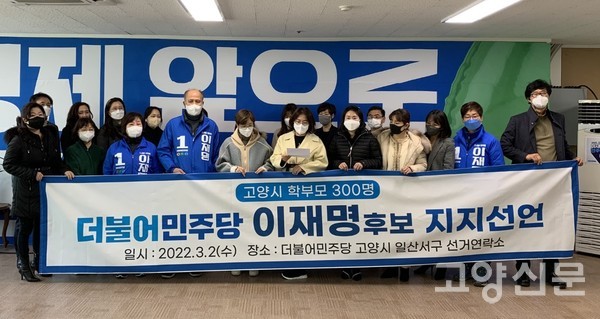 [고양신문] ‘이재명 후보를 지지하는 고양특례시 학부모 300인'이 2일 더불어민주당 일산서구 선거대책위원회(위원장 이용우) 정당선거사무소에서 이재명 후보 지지선언을 진행했다.