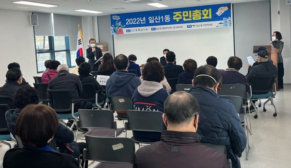 일산1동 주민자치회(부회장 윤재성)가 11일 일산1동 행정복지센터에서 ‘2022년 일산1동 주민총회’를 개최했다. 일산1동 주민자치회는 지난 1월부터 마을 자원 조사를 통해 주민들의 의견을 수렴해 최종 3개의 의제를 선정하고, 우선순위 결정을 위해 3월 10일 사전투표와 3월 11일 현장 투표를 진행했다.