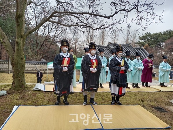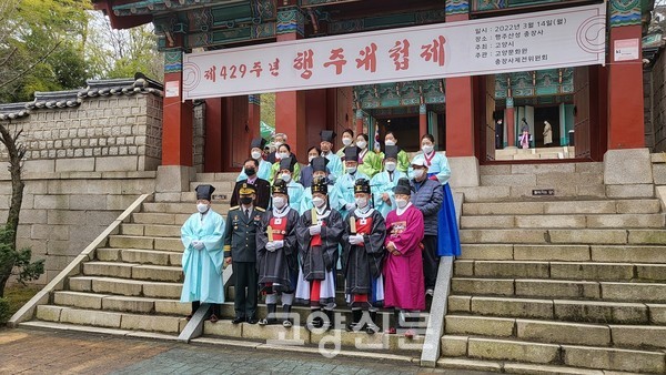 [고양신문] 행주대첩제 충장사 제전위원회(이충구 위원장)가 14일 행주산성 내 충장사(忠壯祠) 충장공 권율도원수 사당에서 고양문화원과 충장사 제전위원회 주관으로 봉행식을 올렸다.