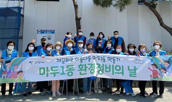 마두1동 행정복지센터(동장 김경희)가 성공적인 꽃박람회 개최를 위해 지난 4월 15일 환경 정비에 나섰다. 이번 환경정비는 마두1동 통장협의회(회장 박창범) 20여 명이 참석해 주로 주택가와 대로변, 공원 등에 방치된 무단투기 쓰레기를 중점적으로 수거했다.