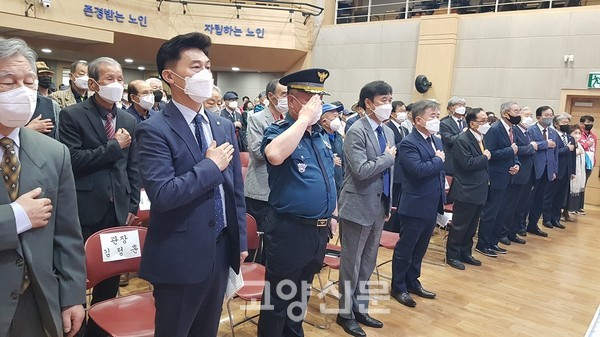 [고양신문] ㈔대한노인회 덕양구지회(지회장 장도영)는 지난 27일 덕양노인종합복지관에서 덕양구 지회장 이·취임식을 개최했다.
