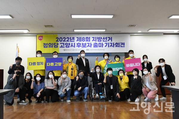 고양시의회 영상회의실에서 열린 이날 출마 기자회견에는 김혜련 시장 후보를 비롯해 정용채(가선거구), 박한기(나선거구), 박소정(다선거구), 장상화(라선거구), 서진원(마선거구) 후보가 함께했다. 대선 이후 다리부상으로 한동안 공식 석상에 모습을 드러내지 않았던 심상정 국회의원 또한 이날 참석해 후보자들을 격려하는 시간을 가졌다.