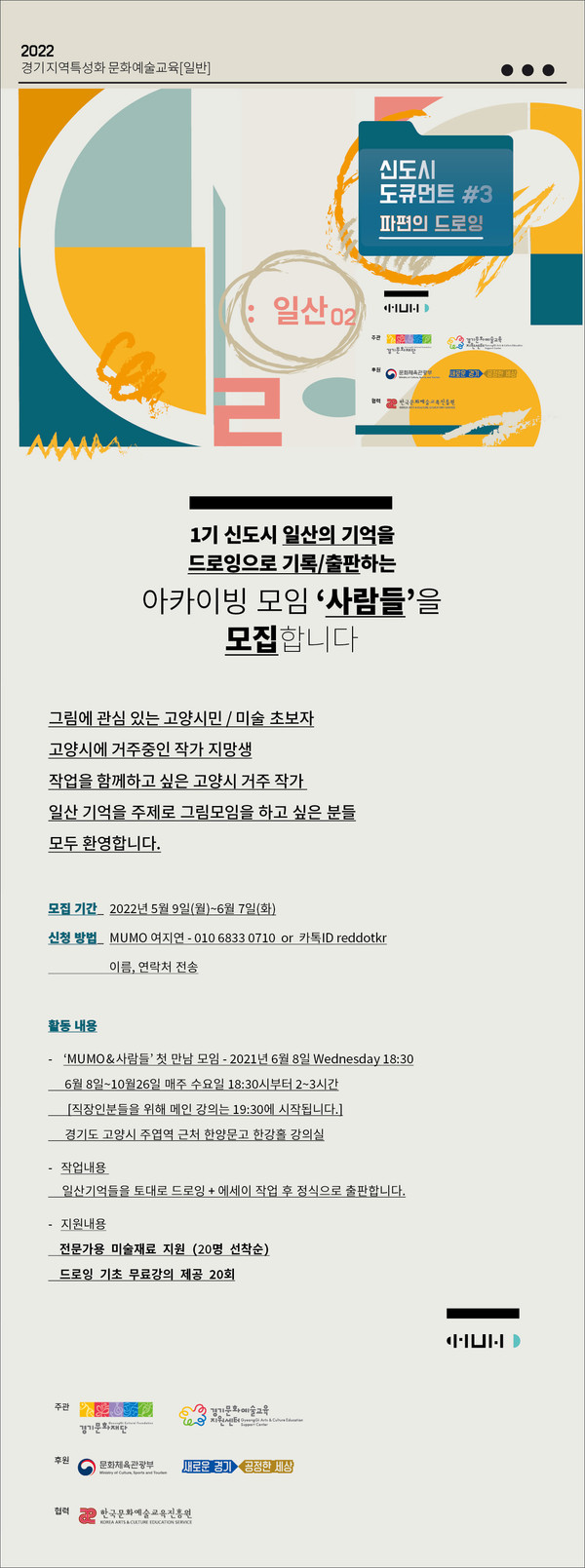 공공미술과 30여 년의 시간을 같이한 그는 독립 문화기획자로 홀로서기를 하고, 2018년부터 MUMO(무모)라는 이름으로 활동하며, 사업자를 등록해 1인 출판사도 운영한다. 2020 경기문화재단 ‘드로잉의 기적’ 소상공인 프로젝트와 2020 고양시자치공동체지원센터 ‘신도시 스케치’ (1기 신도시 30주년 기념 기억 드로잉 작업)와 경기문화재단 지원으로 『2021 일산 도큐먼트-계획 위에 흐르는 삶』을 기획해 책을 발간했다. 또한 경기도교육청의 ‘공공미술 교육 프로그램-김포’와 2021 ‘사람전’ 등 그룹전 다수를 진행하며 공공미술의 끈을 지역과 계속 이어갔다. 여 대표가 지역과 연계한 생활사 아카이빙을 다양한 작업으로 기록하는 이유는 공공미술과 생활사가 그만큼의 충분한 미래가치가 있기 때문이다.