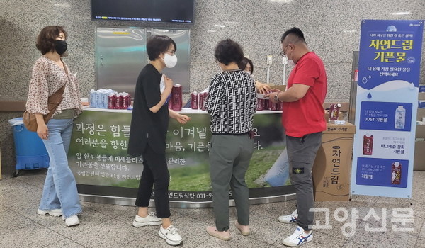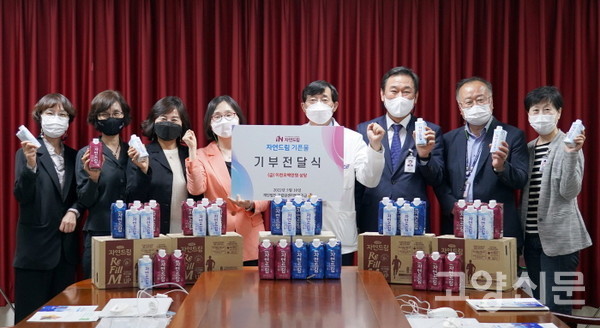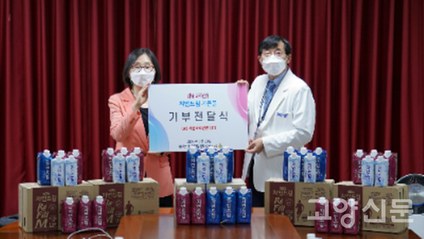 [고양신문] 아이쿱생협이 10일 일산 국립암센터에서 종이팩 심층수 ‘자연드림 기픈물 기부전달식’을 개최했다. 기부된 기픈물은 7만 2240개(약 2500만원 상당)다. 국립암센터는 아이쿱생협으로부터 전달받은 기픈물을 11일부터 13일까지 국립암센터 본관과 신관에 위치한 병동과 외래진료실 10곳에서 증정·배포할 예정이다.
