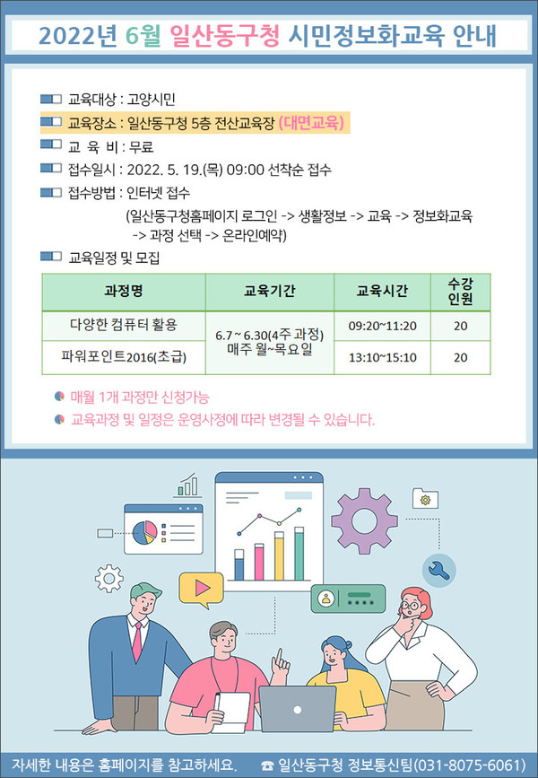 교육과 관련된 자세한 사항은 일산동구 정보통신팀(031-8075-6061)으로 문의하면 된다.