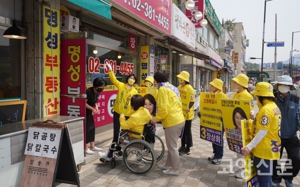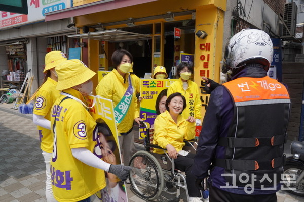 [고양신문] 6.1지방선거에서 고양시장 후보와 여섯 명의 기초의원 후보(비례대표 1명 포함)를 공천한 정의당은 심상정 국회의원의 ‘휠체어 골목 유세’로 공식 선거운동 첫 일정을 시작했다.