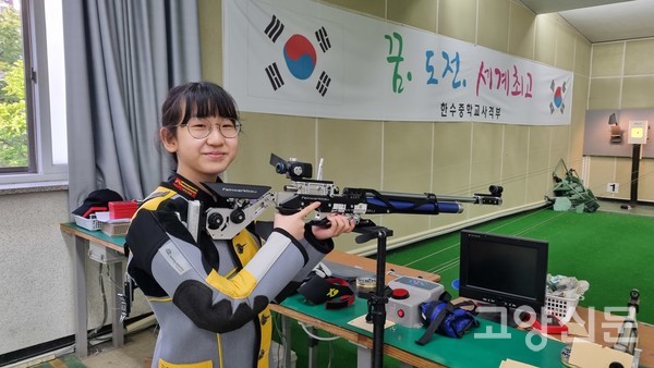 한수중에 입학 후 모집공고를 보고 재미있겠다는 생각에 들어왔다. 뉴스나 텔레비전을 통해 사격에 관심을 갖게 됐다. 요즘 방송에 많이 소개되는 박민하 선수가 롤모델이다. 그의 구체적인 목표나 실력을 보면 존경해야겠다는 생각이 든다. 앞으로 누구나 알만한 선수가 되고 싶다. 지금은 앞 사대만 이기겠다는 목표를 가지고 한발한발 열심히 최선을 다하고 있다.