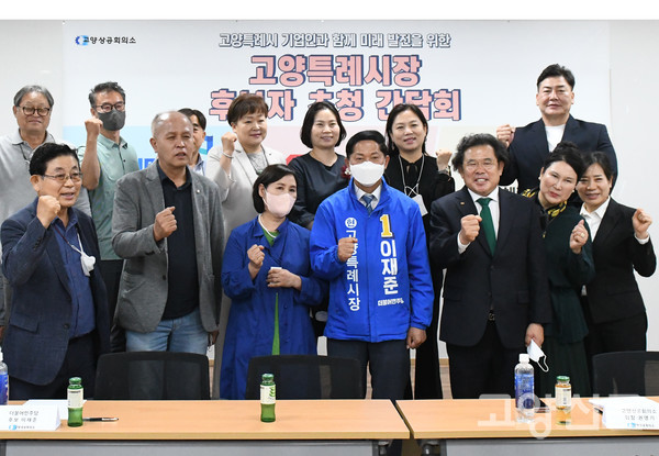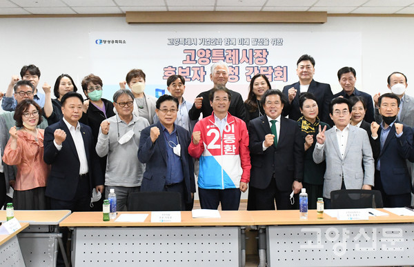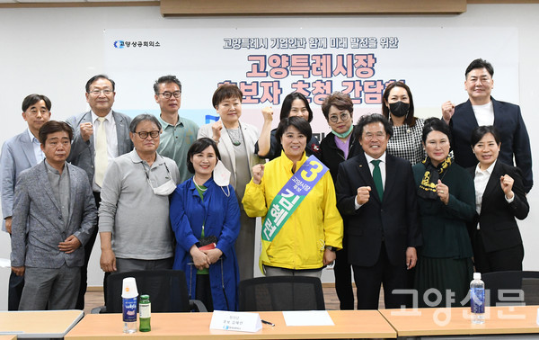 [고양신문] 고양시 기업인들의 대표 경제단체인 고양상공회의소가 지방선거를 앞두고 시장후보들을 초청해 고양시 비전과 경제정책 등을 듣는 시간을 가졌다. 25일 고양상공회의소 2층 교육장에서 열린 시장후보자 간담회는 3명의 후보를 각각 시간대별로 나눠 초청해 기업인들과 이야기를 나누는 식으로 마련됐다. 시간대별로 이동환 국민의힘 후보, 이재준 더불어민주당 후보, 김혜련 정의당 후보 순으로 진행됐으며 이재준 후보는 일정 문제로 인해 늦게 참석해 캠프 총괄선대본부장을 맡고 있는 이용우 국회의원이 일부 답변했다.