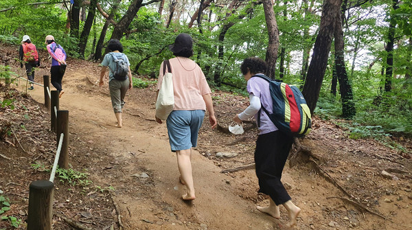“어싱은 지구와의 접지로, 맨발을 땅에 디디면서 발바닥의 지압점들이 자극이 되고 내 몸에 쌓인 전자파가 땅으로 흡수된다고 봅니다. 울퉁불퉁 땅바닥을 걸으며 신발에 갇혀 굳어있던 발가락이 되살아나 틀어진 척추를 되살려 건강을 회복한다고 생각해요. 책을 통해서는 내 몸 모든 관절의 통증이 발가락의 균형이 깨진 것과 관련 있는 것도 알게 됐습니다”라고 설명했다. 그는 건강지킴이 수 회원들의 불면증과 변비, 갑상선 기능 이상, 혈액순환장애 등이 어싱으로 개선됨을 확인해가며 정말 기뻤다. 고봉산 맨발걷기를 자주하는 그는 촉촉한 땅과 가까운 산, 바닷가를 맨발로 걸어보는 것을 권장하며. 오염된 땅은 피하라고 덧붙였다.