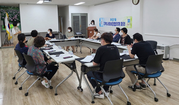 화정1동 행정복지센터(동장 황선혜)는 화정1동 지역사회보장협의체(민간위원장 고성순)가 지난 6월 16일 3차 정기회의를 개최했다. 이번 정기회의에는 화정1동 지역사회보장협의체 위원 11명이 참석했으며, 그간 진행된 특화사업 추진 경과를 확인하고, 고양시지역사회보장협의체 공모사업으로 선정된 ‘건강꾸러미 사업’의 세부계획을 논의하는 시간을 가졌다.