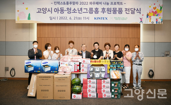 [고양신문] 여름방학을 앞두고 고양시 내 위기청소년들을 위한 따듯한 도움의 손길이 이어졌다. 킨텍스와 사회적기업 ㈜룰루랄라는 지난 21일 킨텍스에서 고양시아동⋅청소년그룹홈연합회에 기부물품을 전달했다. 이날 전달식에는 조승문 킨텍스 경영부사장과 이명아 ㈜룰루랄라 대표, 김지량 고양시그룹홈연합회장 등이 참석했다.
