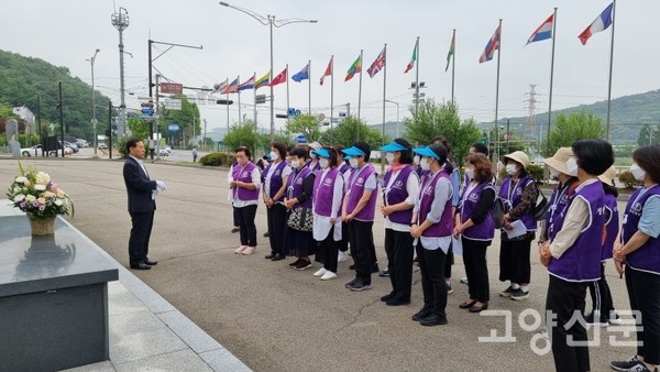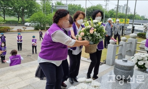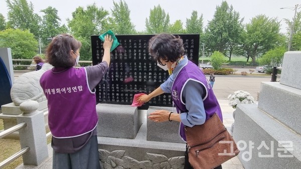 [고양신문] 세계평화여성연합 고양시 일산지부(임태옥 회장)가 지난 17일 고양시 필리핀 참전비(관산동 158-8)에서 일산, 덕양, 금촌, 파주지부 등의 회원들이 모여 추모제식과 봉사활동을 진행했다.