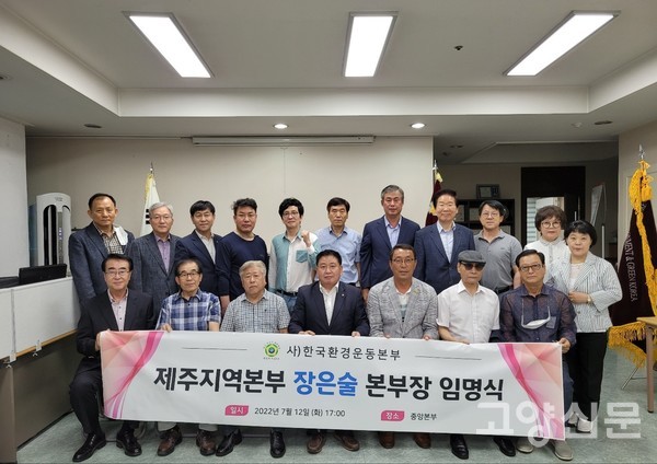 12일 사)한국환경운동본부(총재임형성) 장은술 제주지역본부장 임명장 수여식이 중앙본부에서 개최되었다. 임형성 총재는 “세계문화유산인 제주지역의 환경 파수꾼 역할을 성실하게 수행해 주길 바란다”며, “제주 지역본부를 통해 제주도에 사시는 많은 분들이 해양환경과 지구를 지키는 활동에 적극적으로 참여하는 환경운동이 일어나길 바란다."고 인사말을 했다.