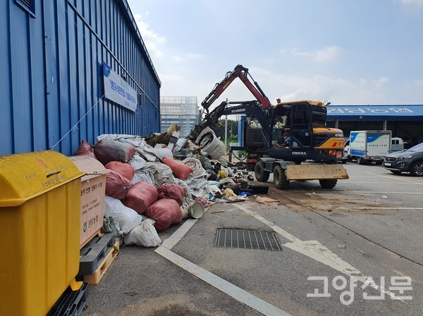 이번 영농폐자재들은 시설하우스와 농경지에 있던 차광막, 스티로폼, 다겹 커튼, 보온 덮게, 깨진 화분 등이 모아졌다. 농가에서는 승합차와 1톤 트럭으로 부지런히 가져와서 내렸고, 조합장과 직원들이 일손을 보탰다.