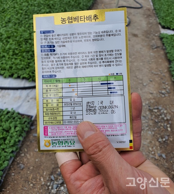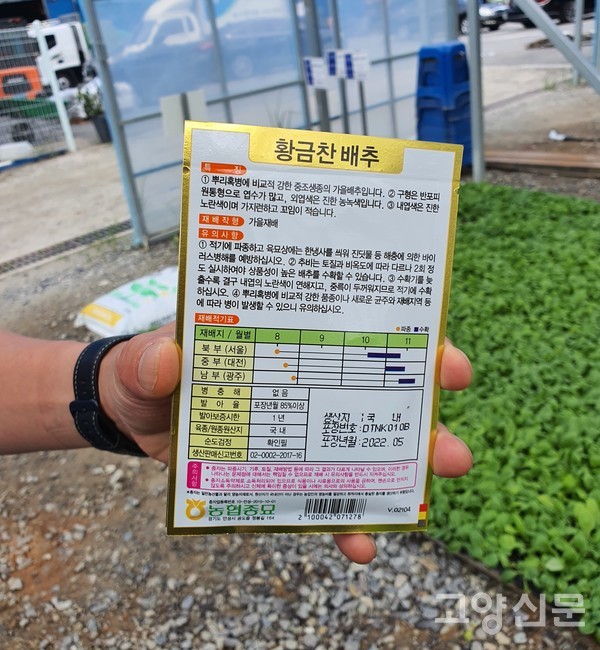 오전 9시부터 오후 5시까지 주말에도 판매되며, 이번 배추모종은 고양시 농업경영인 원당지구회(회장 정원군)에서 정성을 담아 키웠다.