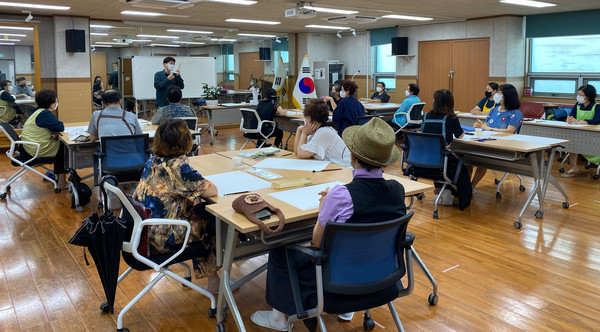 덕양구 행주동 행정복지센터(동장 김종성)가 8월 25일(목) 2022년 행주동 주민자치회 자치사업인 ‘꽃 그림 그리기 수채화반’ 1차 강의를 진행했다. 행주동 행정복지센터 3층 큰 마루방에서 진행된 강의에는 서양화가 서길헌 강사, 행주동 지역 내 주민과 토당골 공동체 마을학교 회원 등 20여 명이 참여해 도구와 물감을 사용하는 방법과 선, 면, 색의 농도 조절 방법을 학습하는 시간을 가졌다.