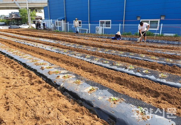 원당농협 자재센터 옆 원당로 368번지 전용농지에서 실시된 이날 행사는 강효희 조합장을 비롯해 원로청년회(회장 장석영), 고향주모(회장 정명희), 농가주모(회장 조옥분), 채움봉사단(단장 이옥희), 이사와 감사 및 농가소득지원과 직원 등 20여 명이 참여했다.