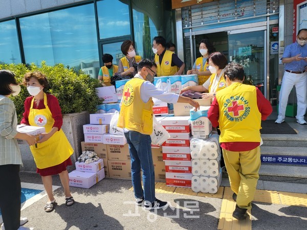 [고양신문] 대한적십자 고양원당봉사회(이광희 회장)가 지난 1일 주교동 행정복지센터(안홍근 동장)에서 추석맞이 사랑나눔 행사를 실시했다.