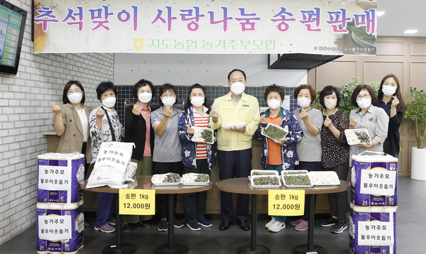 한편, 이날은 지도농협 농가주모 유금례 회장과 회원들이 본점 1층에서 농산물과 송편을 판매해 그 수익금으로 지역 내 어려운 이웃에게 나눔을 했다.