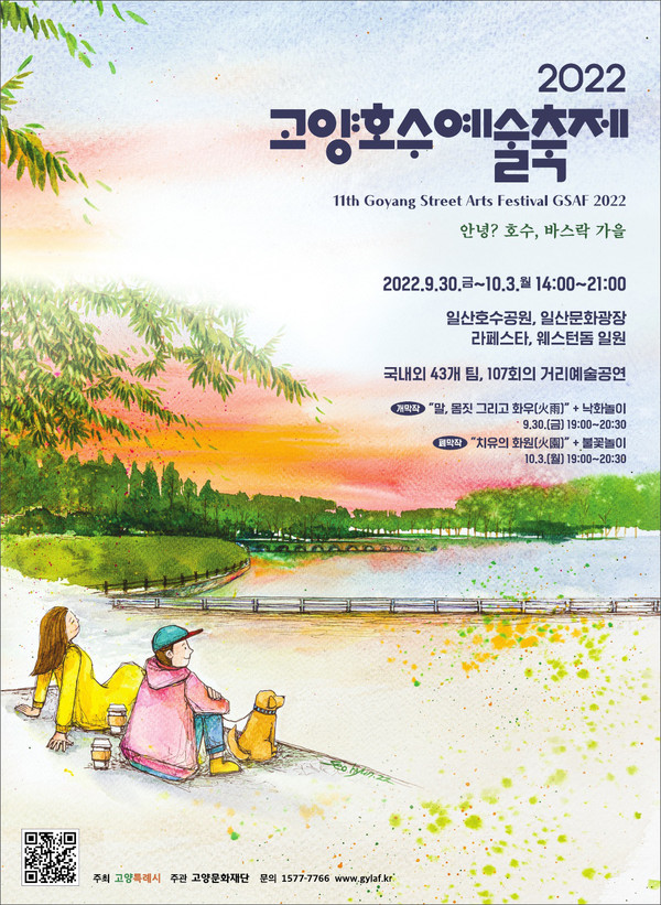 올해로 11회를 맞이하는 고양시 대표 거리예술축제 ‘고양호수예술축제’가 오는 9월 30일(금)부터 10월 3일(월)까지 4일간 일산호수공원과 일산문화광장 일원에서 개최된다. 고양시가 주최하고 고양문화재단이 주관하는 고양호수예술축제는 2018년 이후 4년 만에 전면 야외 대면 축제로 개최되며 국내·외 43개 팀의 공연이 시민들을 맞이할 예정이다.