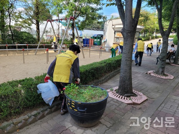 대한노인회 덕양구지회(장도영 지회장)가 21일 주교동 벽산 자원봉사단(단장 박영선) 경로당 주변에서 환경정화 봉사활동을 했다.