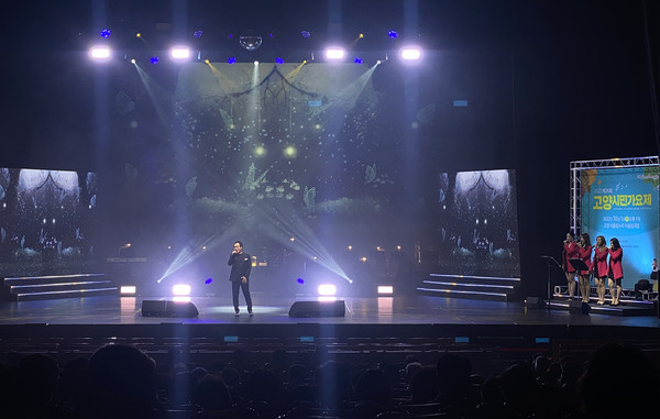 [고양신문] 고양시민가요제가 10월 1일(토) 오후 7시부터 고양예총 주최로 어울림누리 어울림극장에서 열렸다. 지난 9월 24일 관산동 관산복지회관에서 예심을 거쳐 올라온 12명의 본선 진출자들은 한 곡 한 곡 온 힘을 다해 열창했으며, 아낌없는 실력을 발휘했다. 중간 중간 이어진 초대가수 진철·강철·김연숙·류기진·최시라·김종환·진미령의 공연 역시 가요제에 함께한 시민들에게 큰 음악 선물을 안겨줬다. 개그맨 김창준·가수 류지영의 사회로 진행된 이번 시민가요제는 고양시관현악단과 홍경희 무용단, 올뎃코러스 등이 무대를 빛나게 했고, 큰 박수를 받았다.