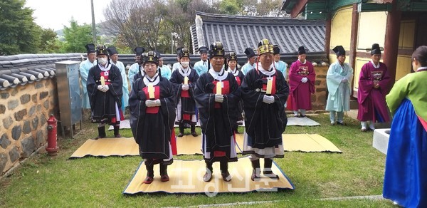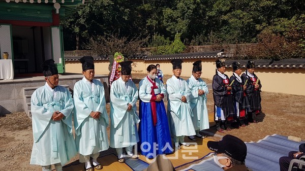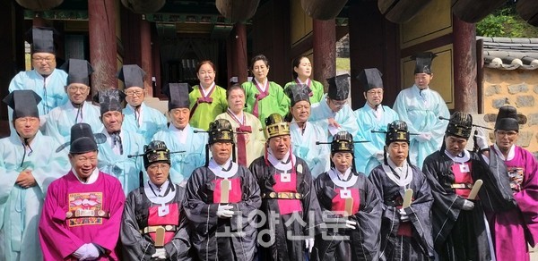이현규 집례와 한영애 해설로 진행한 이날 행사는 전향례를 시작으로 초헌관 김영식 고양시의회 의장, 아헌관 김용규 고양문화원장, 종헌관 곽미숙 경기도의회 의원 외 각 문중 대표 등 순으로 각종 제물들이 올려있는 신위전 앞에 술잔과 폐백을 올렸다.