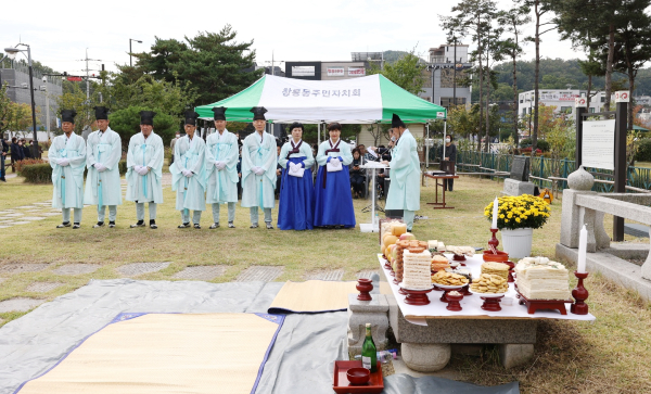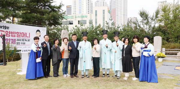 [고양신문] ‘제19회 고양밥할머니 추향제’가 14일 고양밥할머니공원에서 봉행 됐다. 1부 행사로 치러진 추향제는 밥할머니 석상 관욕식에 이어 이충구 충장사제전위원장의 집례 아래 김용규 고양문화원장이 초헌관, 이병영 창릉동 동장이 아헌관을 맡았다.