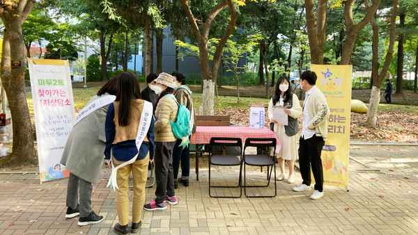 일산동구 마두2동 지역사회보장협의체(민간위원장 양정자)가 지난 10월 20일 흰돌종합사회복지관과 복지사각지대 발굴을 위한 홍보캠페인을 마두2동 행정복지센터(동장 안진희)는 찾아가는 복지상담을 강촌공원에서 진행했다.