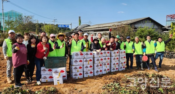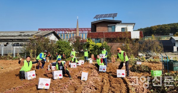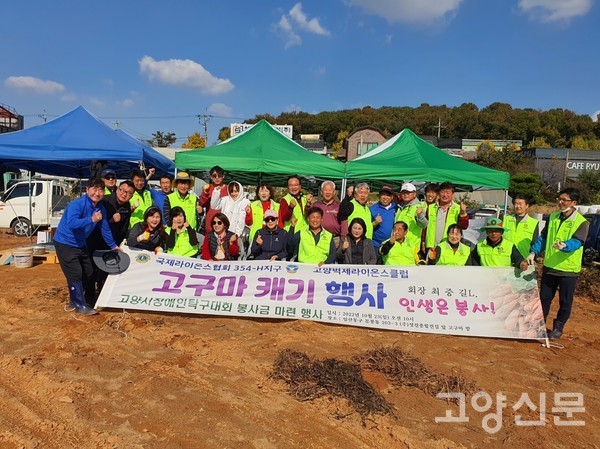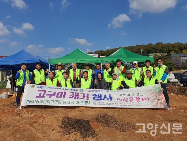[고양신문] 고양벽제라이온스클럽(22대 회장 최중길)이 지난 23일 일산동구 문봉동 203-3 고구마밭(성진종합건설 앞)에서 장애인 탁구대회(11월 12일) 기금 마련을 위한 사랑의 고구마 캐기 행사를 열었다.
