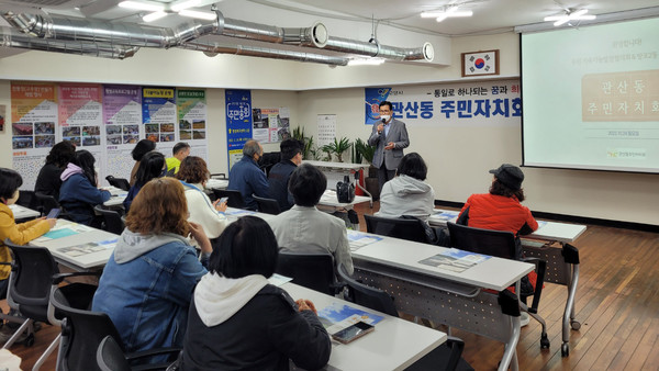 10월 24일(월) 수원특례시 망포2동 주민자치회와 지속가능발전협의회가 관산동 주민자치회를 벤치마킹하기 위해 방문했다. 이날 관산동 주민자치위원들은 망포2동 주민자치회·지속가능발전협의회 위원들에게 관산동의 주요 사업 5가지를 소개했다.