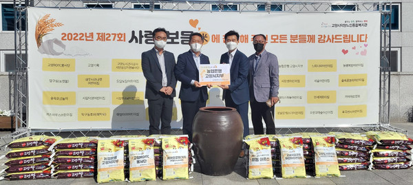 NH농협 고양시지부(지부장 오영석)가 10월 31일 고양시덕양노인종합복지관에 ‘2022년 제27회 사랑보듬米’ 행사에 150만원 상당(5kg/57포)의 고양쌀을 전달했다. 농협 고양시지부는 매년 임직원이 자발적으로 성금을 모아 지역 내 독거노인 등 생활형편이 어려운 분들을 위해 나눔 기부활동을 실천하고 있다.
