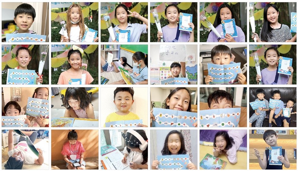 그리고 어느 주말 오후, 완주를 축하하는 자리를 마련했답니다. 플래카드도 걸고 예쁜 꽃 한 송이도 들고 멋지게 기념 사진을 찍었어요. 책을 읽으며 우정을 쌓아가는 우리 친구들에게 이 순간이 모두 행복한 추억으로 남았으면 좋겠습니다. 독서 습관을 기르고, 아이의 성장을 도울 수 있는 좋은 기회를 마련해 주신 고양신문사에 감사의 말씀 전합니다.