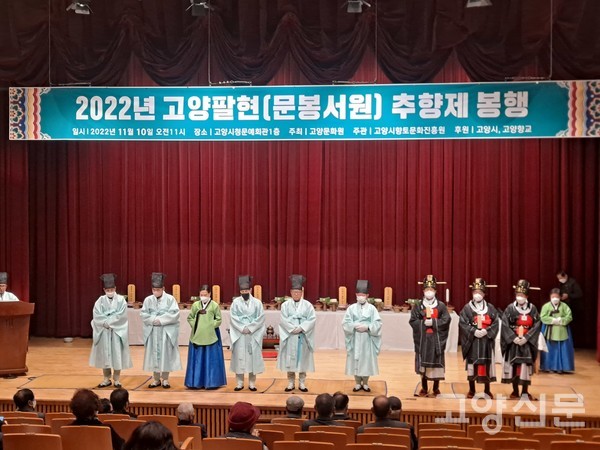 10일 11시, 고양문예회관에서 고양팔현 추향제가 봉행되었다. 초헌관은 김용규 고양문화원장, 아헌관은 김보연 고양시 산림조합장, 종헌관은 김병윤 사재 김정국 선생의 후손인 의성김씨 문목공파 종친회장, 감재는 안재성 고양시향토문화진흥원, 대축은 선호술 문봉서원 유사가 맡아 추향제를 봉행했다.