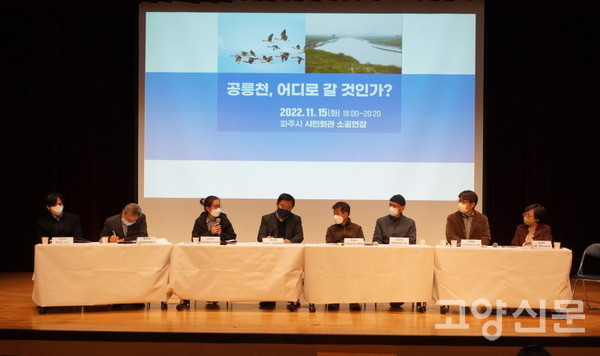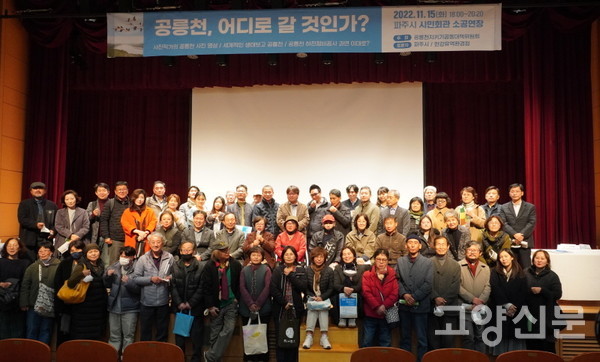 [고양신문] 생태계를 위협하는 공릉천 하구 하천정비공사를 저지하기 위한 시민활동을 펼치고 있는 ‘공릉천훼손저지시민대책위원회’가 주최한 토론회가 15일 파주시청 시민회관 소공연장에서 열렸다. ‘공릉천, 어디로 갈 것인가?’라는 물음을 타이틀로 내건 이날 토론회는 전문가의 발제와 토론·질의응답 등 장장 3시간에 걸친 열띤 논의가 이어졌다.