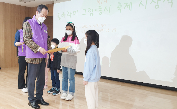 시상식은 그림과 동시 부문 각각에 솔바라미상, 고운바람상, 초록잎새상, 맑은바다상, 푸른하늘상이라는 이름으로 수상자에게 상장, 작품집과 더불어 집에서 키울 수 있는 예쁜 화분이 선물로 제공됐다.