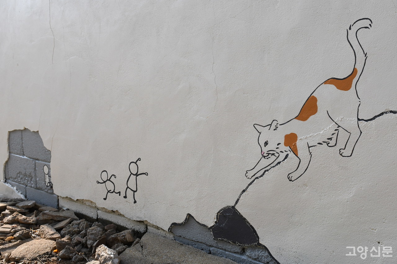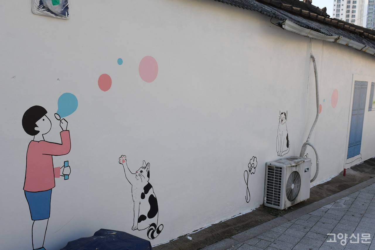 홍승우 일산도시재생센터 청년인턴은 “대부분 사업지역에 환경개선사업이 이뤄졌지만 이곳 골목길은 사유지이기 때문에 예산지출을 할 수 없었다”며 “대신 주민들이 공모사업을 통해 이곳에 벽화그리기를 진행했다”고 밝혔다.