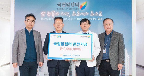 NH농협 고양시지부(지부장 오영석)가 12월 23일(금) 국립암센터를 방문해 국립암센터발전기금 200만원을 전달했다(사진). 농협 고양시지부 2019년부터 국립암센터발전기금에 기부하고 있으며, 지원된 발전기금은 암 예방 검진센터 지원을 목적으로 사용될 예정이다.