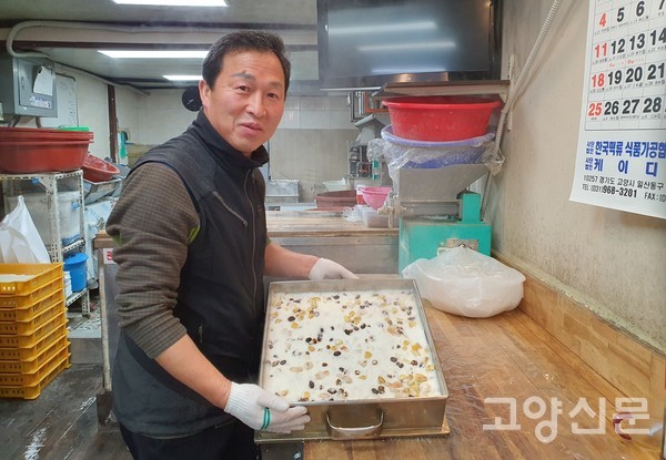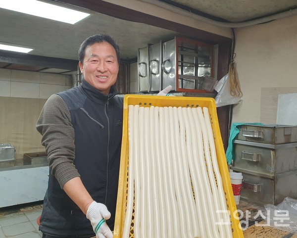 [고양신문] 조승호(62세) 조조떡집 대표는 “24년째 지역에서 봉사하며 국내산 쌀로 쫀득하고 맛있는 떡을 만들고 있다”고 한다.
